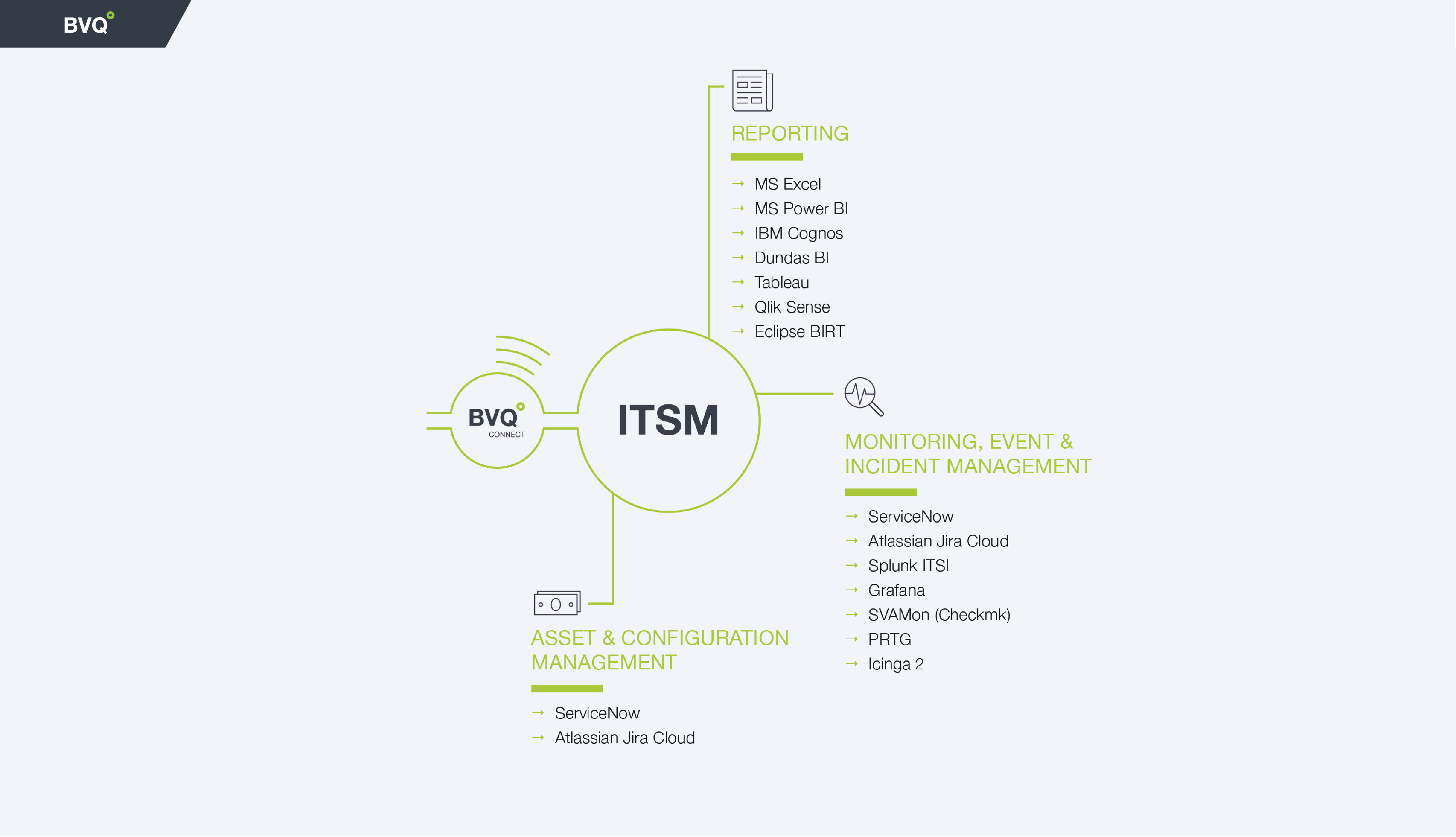 Im Unterschied zu klassischen Einzellösungen vereint BVQ° mehrere essenzielle Funktionen in einem zentralen Tool: Monitoring, Alerting, Analyse, Reporting sowie die nahtlose Integration in bestehende IT-Service-Management- (ITSM) und Business-Intelligence-Systeme (BI). Mit BVQ° entsteht ein ganzheitliches, präzises Abbild Ihrer IT-Landschaft – in Echtzeit, nachvollziehbar und auf konkrete Maßnahmen ausgerichtet.