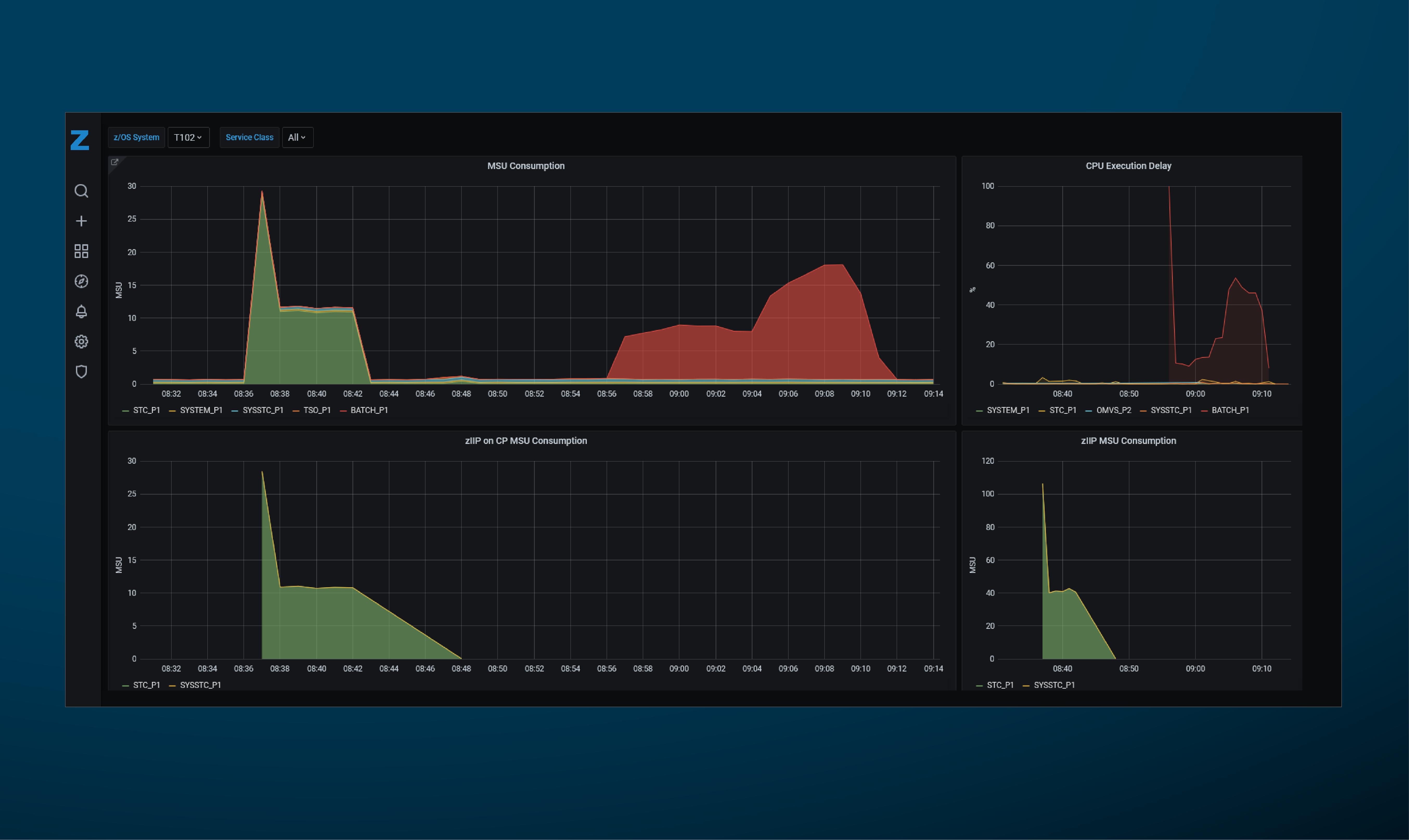 Mit z/Guard behalten Sie Ihre Mainframe-Performance jederzeit im Blick. Alle Serviceklassen des Workload Managers liefern minütlich Verbrauchswerte und Wartezeiten. Auch der „zIIP on CP“-Verbrauch wird transparent, sodass Sie rechtzeitig gegensteuern können, bevor zusätzliche Kosten entstehen. Ergänzend liefern Topologiedaten zum Prozessor wertvolle Einblicke. Die bereitgestellten Werte ermöglichen Ihnen ein interaktives HiperDispatch-Ranking Ihrer LPARs und Sie können das volle Potenzial Ihrer Plattform nutzen.