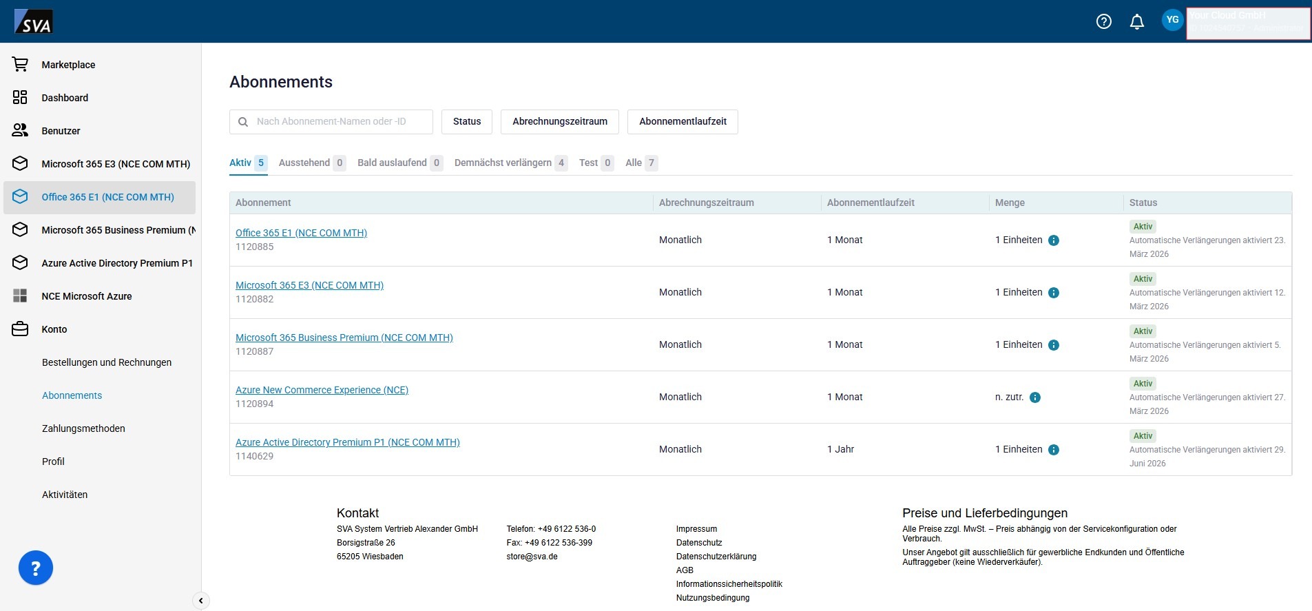 Unser SVA Store liefert Ihnen nicht nur eine umfassende Übersicht über verschiedene verfügbare Cloud-Produkte und -Services, sondern bietet Ihnen auch einen idealen Ort, um Ihr gesamtes Portfolio an bestehenden Cloud-Abonnements zu verwalten.