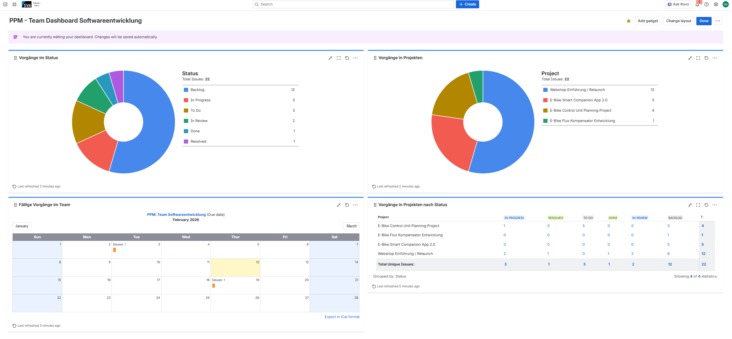 Effizientes Projekt- und Portfoliomanagement gelingt dann am besten, wenn Prozesse, Tools und Teams nahtlos zusammenarbeiten. Der PPM Navigator bietet dafür eine sofort einsetzbare „Out‑of‑the‑box“-Implementierung für Jira Premium und Confluence Standard – inklusive Templates, Workflows, Dokumentation und zielgerichtetem Enablement. Unternehmen erhalten damit eine praxiserprobte Grundlage, um Projekt-, Portfolio-, Ressourcen- und Work‑Management schnell, transparent und strukturiert aufzubauen. Eine klare Roadmap mit Workshops und passgenauem Tailoring sorgt dafür, dass die Lösung optimal an individuelle Anforderungen angepasst wird und Teams schnell produktiv arbeiten können.